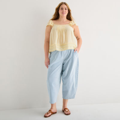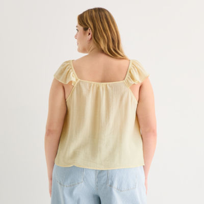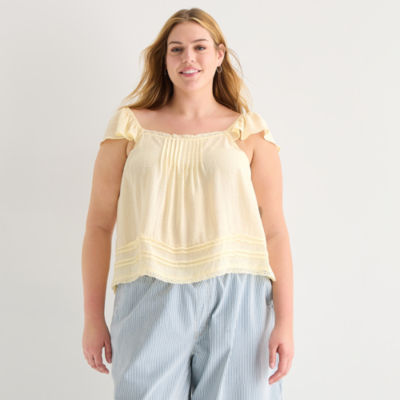a.n.a Womens Plus Square Neck Short Sleeve Lace Blouse
