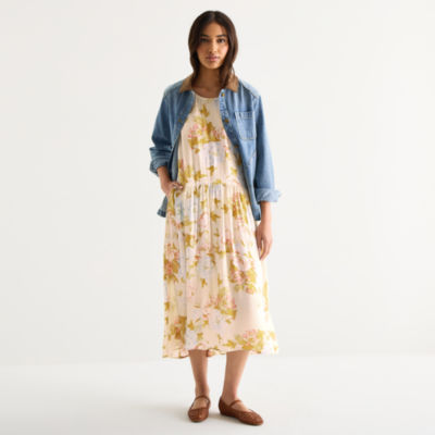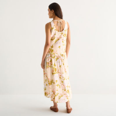 a.n.a Womens Sleeveless Floral Midi Drop Waist Dress