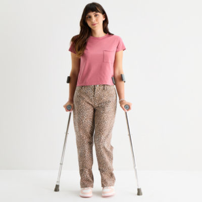 Arizona Womens Juniors Low Rise Easy-on + Easy-off Baggy Fit Straight Leg Jean