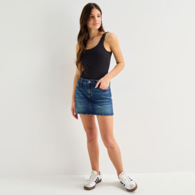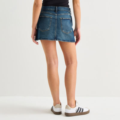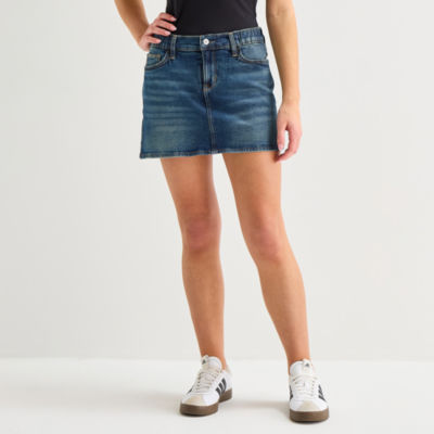 new!Arizona Womens Juniors Mid Rise Midi Denim Skirt