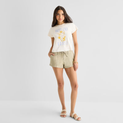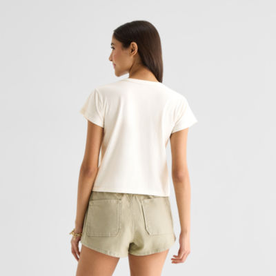 new!Arizona Womens Juniors Round Neck Short Sleeve Classic Fit Graphic T-Shirt