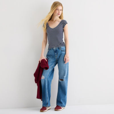Arizona Womens Juniors V Neck Short Sleeve T-Shirt