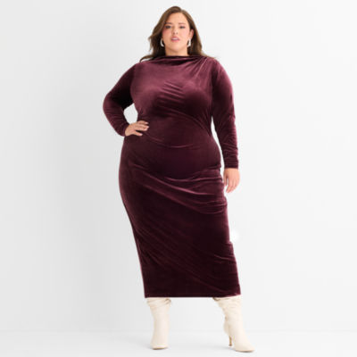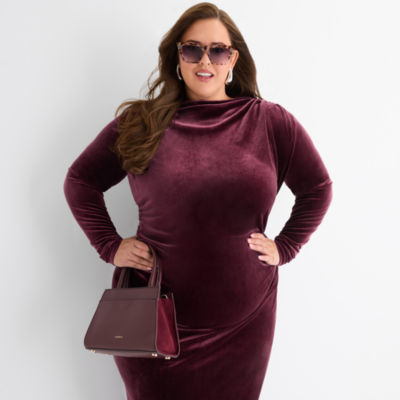 Ashley Graham Goddess Gather Velour Womens Plus Long Sleeve Bodycon Dress