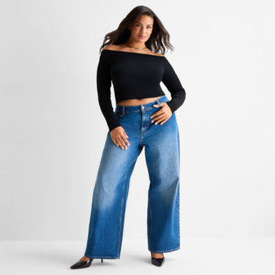 Ashley Graham Womens Plus Off the Shoulder Long Sleeve Top