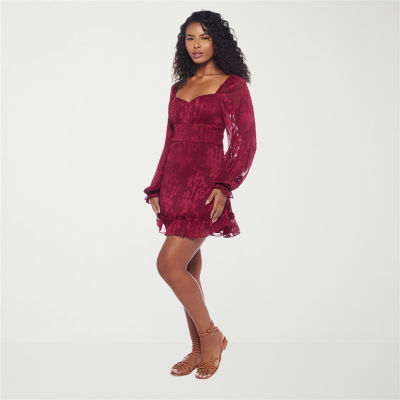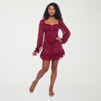 B. Smart Womens Juniors Long Sleeve Fit + Flare Dress