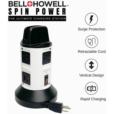 Bell+Howell Spin Power Charging Station with Surge Protector and Power Strip