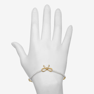 Bijoux Bar Delicates Gold Tone Womens Simulated Pearl Bow Bolo Bracelet