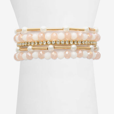 Bijoux Bar Gold Tone Womens 5-pc. Pink Glass Bracelet Set