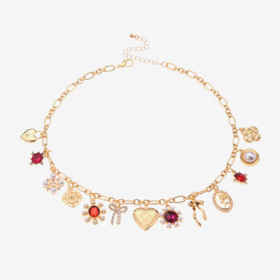 Bijoux Bar Gold Tone Womens Red 16 Inch Statement Necklace