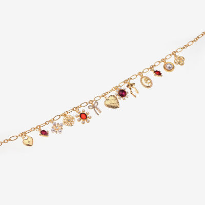 Bijoux Bar Gold Tone Womens Red 16 Inch Statement Necklace