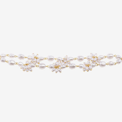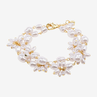 Bijoux Bar Gold Tone Womens Simulated Pearl Strand Bracelet