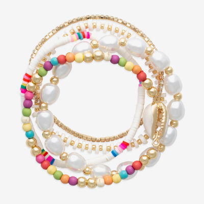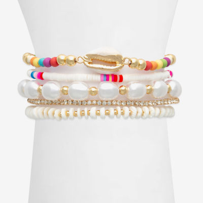 Bijoux Bar Shell Womens Simulated Pearl Beaded Bracelet