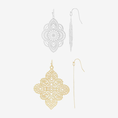 Bijoux Bar Two Tone Filigree Womens 2 Pair Earring Set