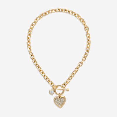 Bold Elements Gold Tone Womens Glass Heart 16 Inch Pendant Necklace