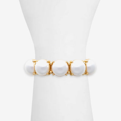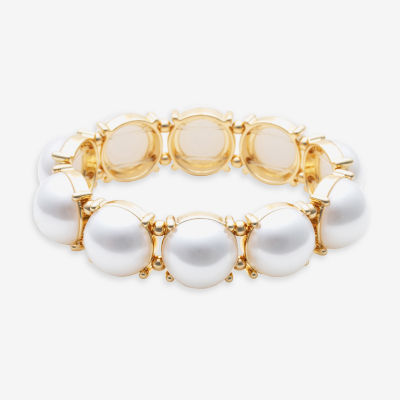 Bold Elements Womens White Simulated Pearl Round Stretch Bracelet