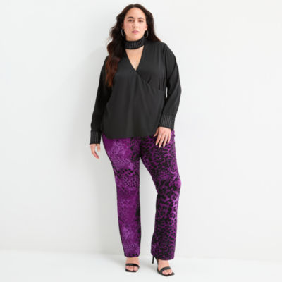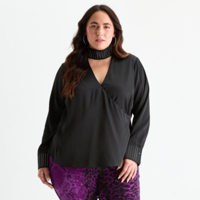 Bold Elements Womens Plus V Neck Long Sleeve Satin Blouse