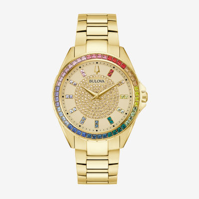 Bulova Classic Crystal Mens Crystal Accent Gold Tone Stainless Steel Bracelet Watch 97a179