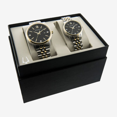 7 Reviews3 Questions & 0 Answers0518645Bulova His and Hers Adult Two Tone Stainless Steel 2-pc. Watch Boxed Set 98x125Shop all Bulova12345678Add to CartProduct DetailsShipping & Returns Shop The LookReviews(7)Questions & AnswersAdd To Cart