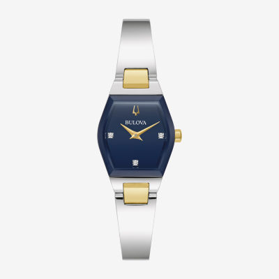 Bulova Modern Gemini Womens Diamond Accent Two Tone Stainless Steel Bangle Watch 98p218