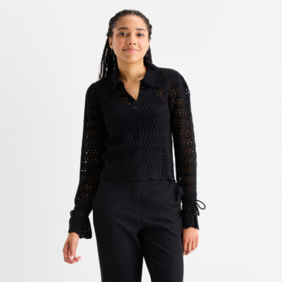 by&by Womens Juniors Long Sleeve Polo Shirt