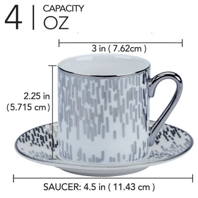 Certified International Matrix Silver Espresso Cup & Saucers Set