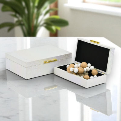 Write a ReviewAsk a Question8870842new!Cheungs White Seascale Pattern Iridescent Box Set With Gold Hardware White Jewelry OrganizerShop all Cheungs12345678Add to CartFeaturesHandmadeSpot CleanProduct DetailsShipping & Returns ReviewsQuestions & AnswersAdd To Cart