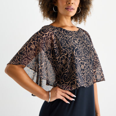 Connected Apparel Womens Short Sleeve Floral Overlay Sheath Dress