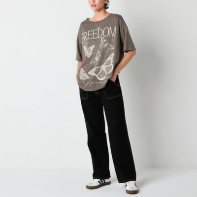 Cosmic Butterfly Oversized Tee Womens Juniors Crew Neck Short Sleeve Oversized Graphic T-Shirt