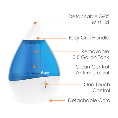 110 ReviewsAsk a Question8010849Crane Droplet 0.5 Gallon Ultrasonic Cool Mist Humidifier - Blue/WhiteShop all CraneModel #EE-530212345678Add to CartProduct DetailsShipping & Returns Reviews(110)Questions & AnswersAdd To Cart