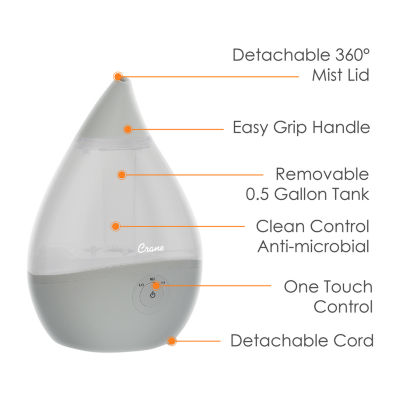 110 ReviewsAsk a Question8010855Crane Droplet 0.5 Gallon Ultrasonic Cool Mist Humidifier - GrayShop all CraneModel #EE-5302GR12345678Add to CartProduct DetailsShipping & Returns Reviews(110)Questions & AnswersAdd To Cart