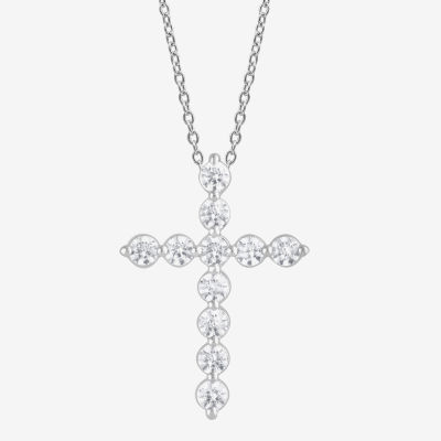 Cross (F, Si2) Womens 1 CT. T.W. Lab Grown White Diamond 14K Gold Over Silver Cross 18 Inch Pendant Necklace