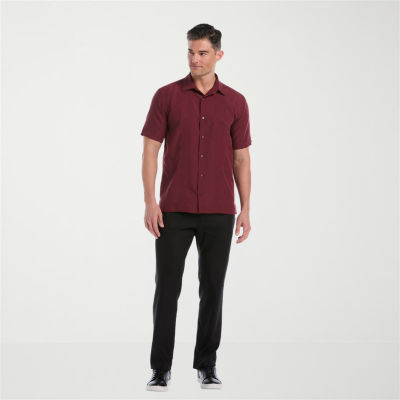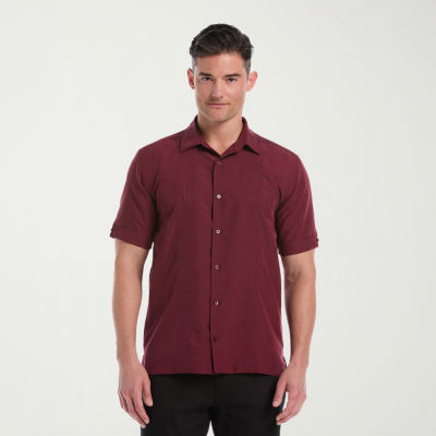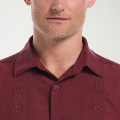 Cubavera Argyle Embroidery Panel Mens Short Sleeve Regular Fit Button-Down Shirt