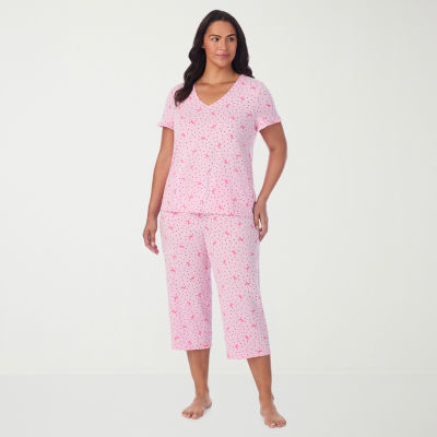 Cuddl Duds Womens V-Neck Short Sleeve 2-pc. Plus Pajama Sets
