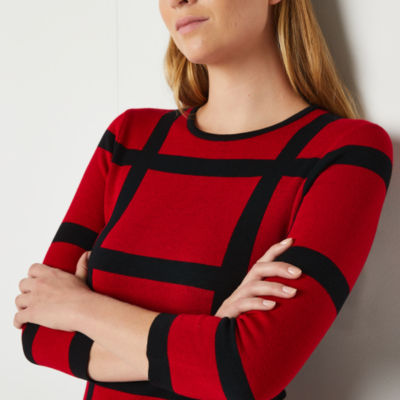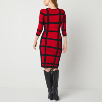 Danny & Nicole Womens 3/4 Sleeve Windowpane Sweater Dress