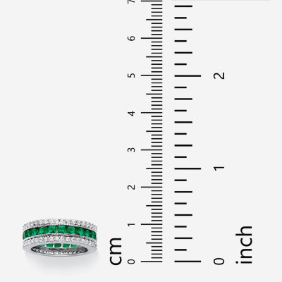 DiamonArt® Womens Simulated Emerald Platinum Over Silver Square Cocktail Ring