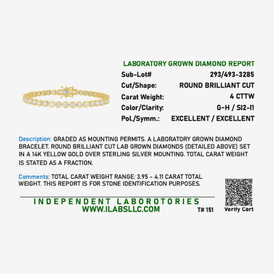 Write a ReviewAsk a Question2933285ColorDiamond Addiction (G-H, Si2-I1) Womens 4 CT. T.W. Lab Grown White Diamond 14K Gold Over Silver 7.25 Inch Tennis Bracelet12345678Add to CartProduct DetailsShipping & Returns Shop The LookReviews(0)Questions & AnswersAdd To Cart