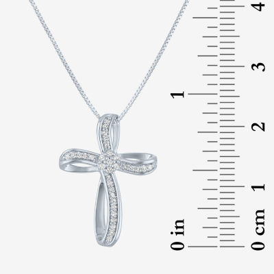Diamond Blossom (G-H / Si2-I1) Womens 1/10 CT. T.W. Lab Grown White Diamond Sterling Silver Cross 18 Inch Pendant Necklace