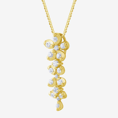 Diamond Blossom (G / Si2) Womens 1/2 CT. T.W. Lab Grown White Diamond 10K Gold Flower 18 Inch Pendant Necklace