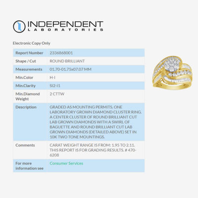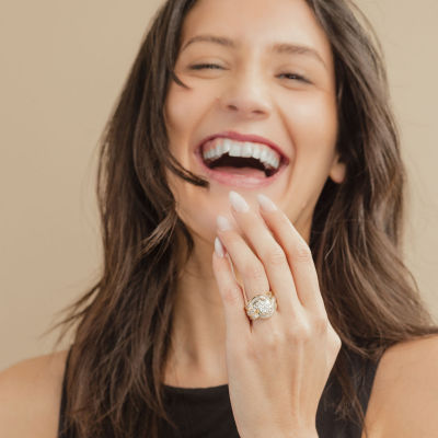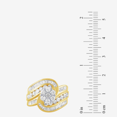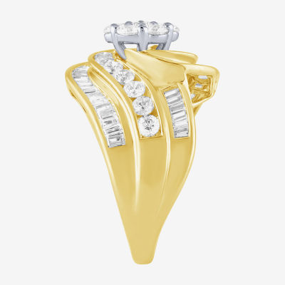 Diamond Blossom (H-I / I1) Womens 2 CT. T.W. Lab Grown White Diamond 10K Gold Side Stone Cocktail Ring