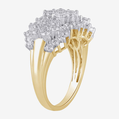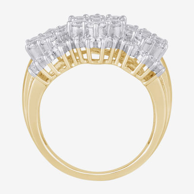 Diamond Blossom (I, I2) Womens 2 CT. T.W. Lab Grown White Diamond 14K Gold Over Silver Cluster Cocktail Ring