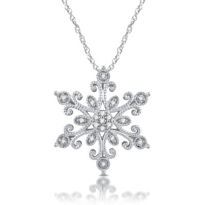 Diamond Blossom Womens 1/10 CT. T.W. Natural White Diamond Sterling Silver Snowflake 18 Inch Pendant Necklace