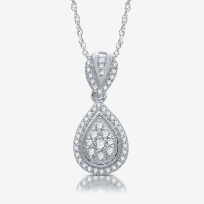 Diamond Blossom Womens 1/4 CT. T.W. Natural White Diamond Sterling Silver Pear 18 Inch Pendant Necklace