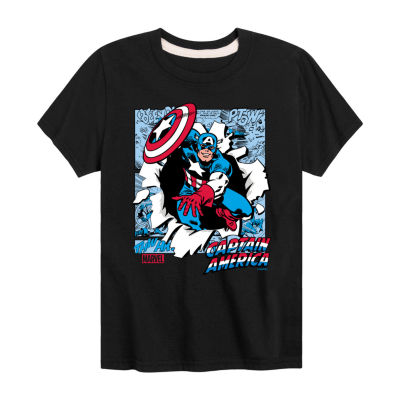 Disney Collection Brave New World Little & Big Kid Boys Crew Neck Short Sleeve Regular Fit Captain America Marvel Graphic T-Shirt