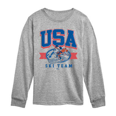 new!Disney Collection Little & Big Kid Boys Crew Neck Long Sleeve Regular Fit Mickey Mouse Graphic T-Shirt