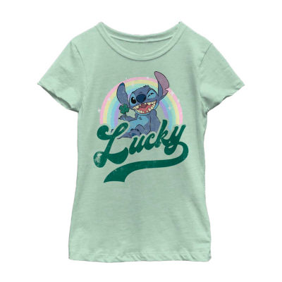 Disney Collection Little & Big Kid Girls Crew Neck Short Sleeve Regular Fit Lilo & Stitch Graphic T-Shirt
