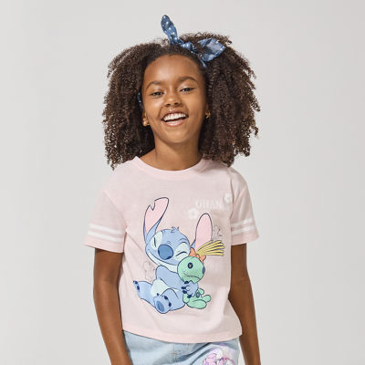 Disney Collection Little & Big Kid Girls Crew Neck Short Sleeve Regular Fit Lilo & Stitch Graphic T-Shirt
