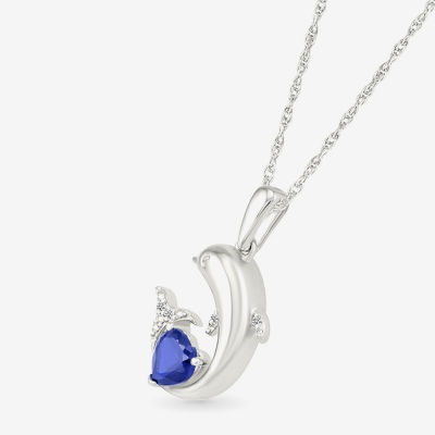 Dolphin Womens Diamond Accent Lab Created Blue Sapphire Sterling Silver 18 Inch Pendant Necklace