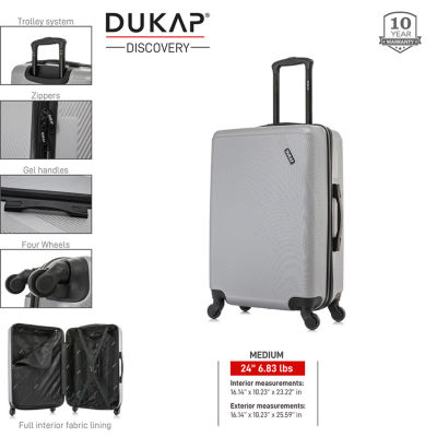 2 ReviewsAsk a Question0471236ColorLuggage SizeDukap Discovery 24-Inch 24 Inch Hardside Lightweight Checked Spinner LuggageShop all Dukap12345678Add to CartFeaturesLightweightSpinner Wheels10 YearProduct DetailsShipping & Returns Shop the CollectionDukap Discovery 24-Inch 24 Inc...Dukap Discovery 20-Inch 20 Inc...Dukap Discovery 28-Inch 28 Inc...DUKAP Discovery 3-pc.Hardside ...Reviews(2)Questions & AnswersAdd To Cart