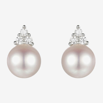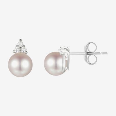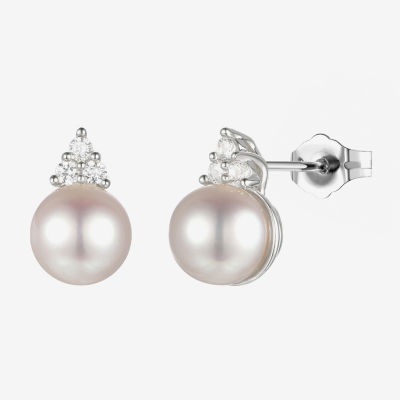 Dyed White Cultured Freshwater Pearl Sterling Silver 8mm Stud Earrings