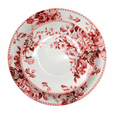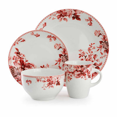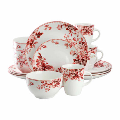 Elama Traditional Red Rose 16-pc. Stoneware Dinnerware Set